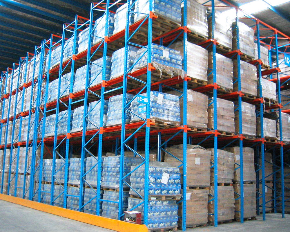 适用于横向尺寸较大,品种较少,数量较多,是存储效率最高的货架